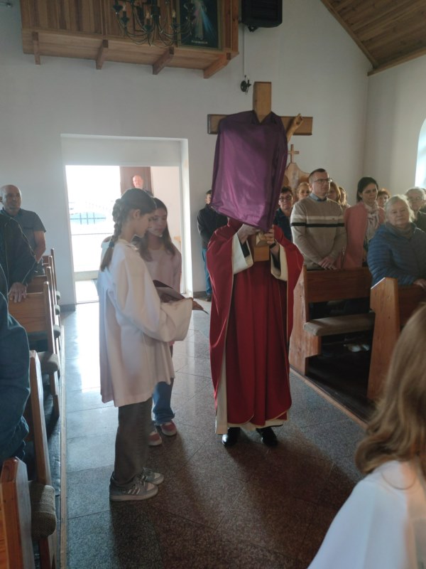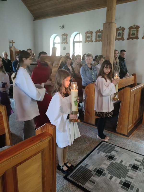 Wielki Piątek jest dniem zadumy nad Męką Chrystusa, skupienia, powagi, wzmożonej pobożności i gorliwych praktyk religijnych. W kościele tego dnia nie odprawia się mszy św., tylko ma miejsce wieczorna Liturgia Męki Pańskiej. Najważniejszym jej elementem jest adoracja krzyża. Wierni podchodzą do krucyfiksu, przyklękają i symbolicznym ucałowaniem wyrażają przyjęcie odkupienia Jezusa.
