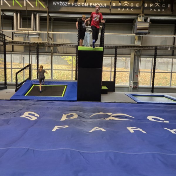 W pierwszej części wyjazdu dzieci mogły wyładować energię, ćwiczyć sprawność i cieszyć się wspólną zabawą w świecie skoków, salt i śmiechu. Park trampolin okazał się miejscem pełnym pozytywnej energii, sportowych wyzwań i ogromnej radości!