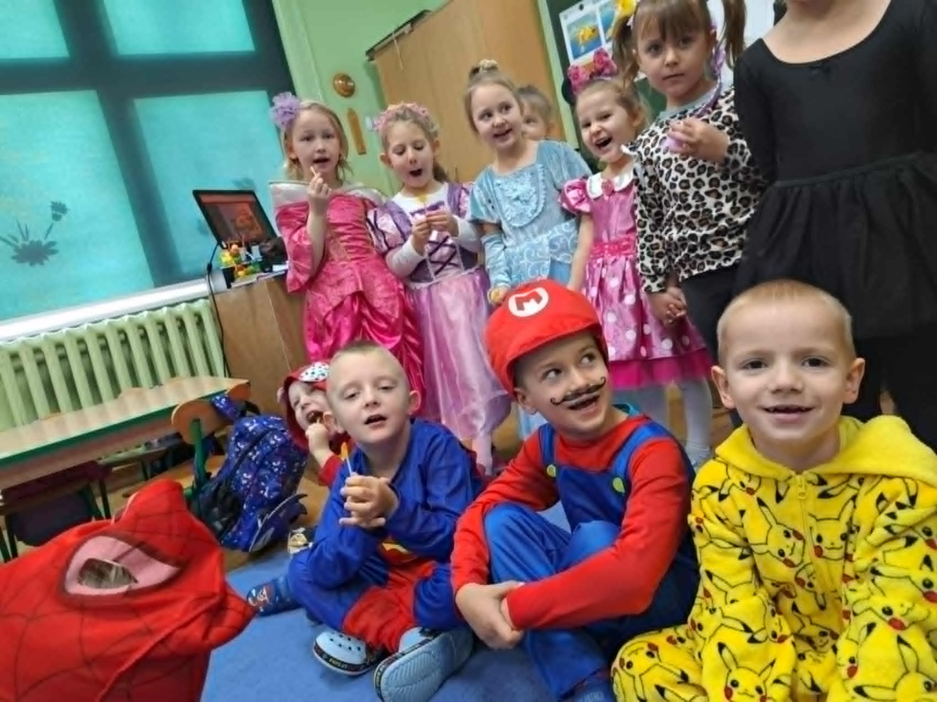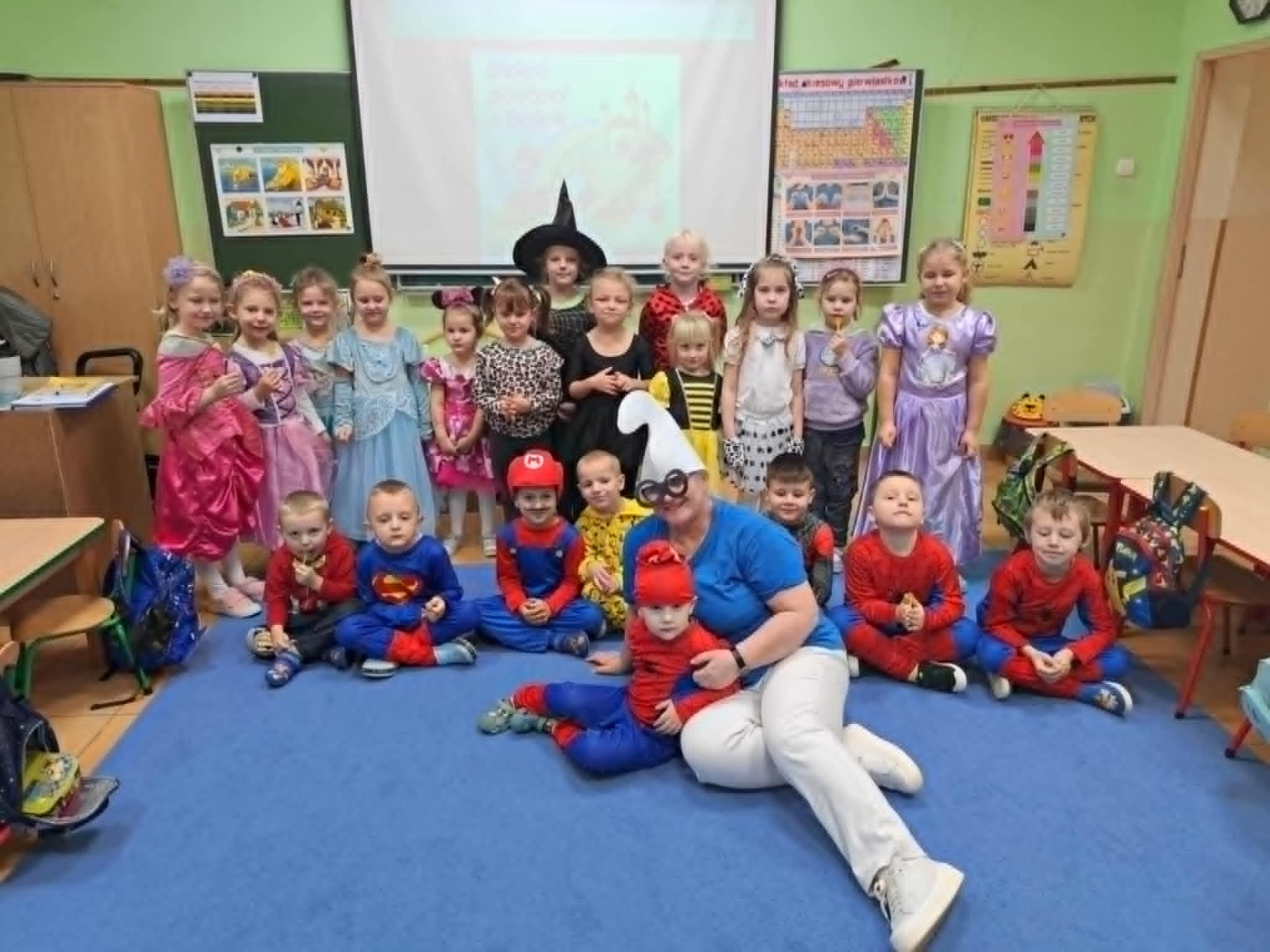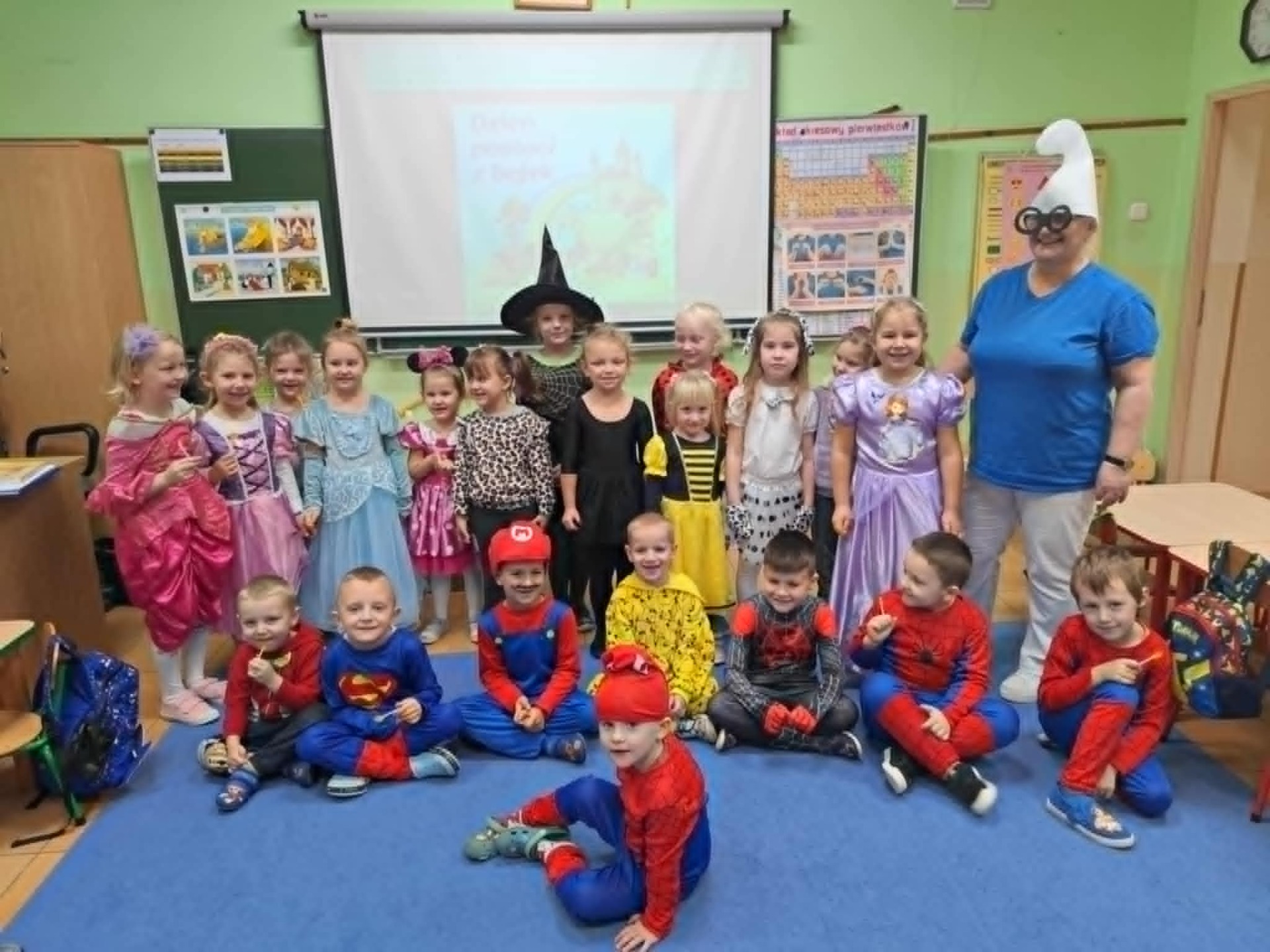 To był niesamowity dzień pełen radości, tańca i zabawy, nad którym czuwał sam Smerf Ważniak – w tej roli niezastąpiona wychowawczyni pani Marysia Dudyk-Baran. Uśmiechów nie brakowało, a dzieci na długo zapamiętają tę magiczną bajkową przygodę!