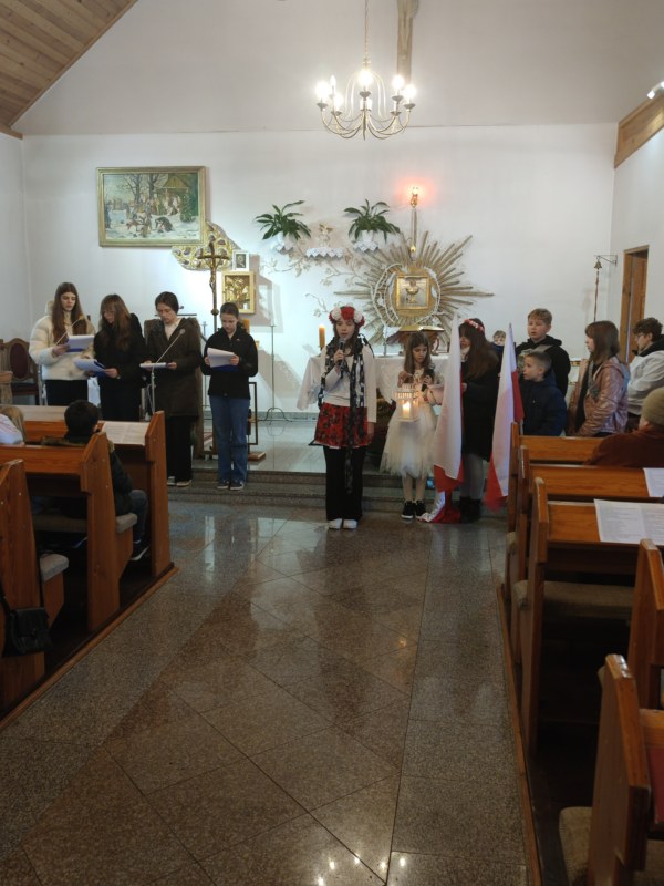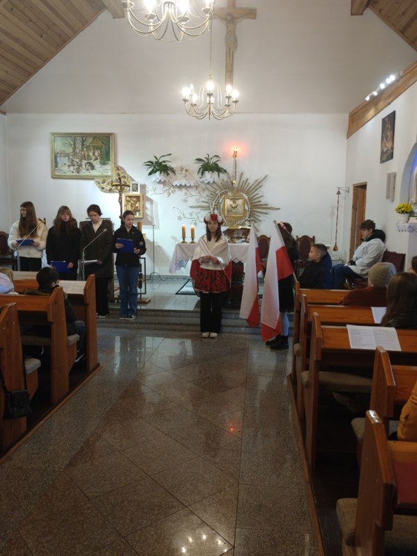 Lubimy trwać w atmosferze Święta Odzyskania Niepodległości. Chociaż od 11 listopada minęło już kilkanaście dni, to dziś 23 XI 2025 uczniowie naszej szkoły przedstawili w kościele parafialnym w Gałajnach program przygotowany z okazji tego święta.