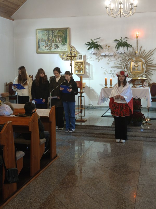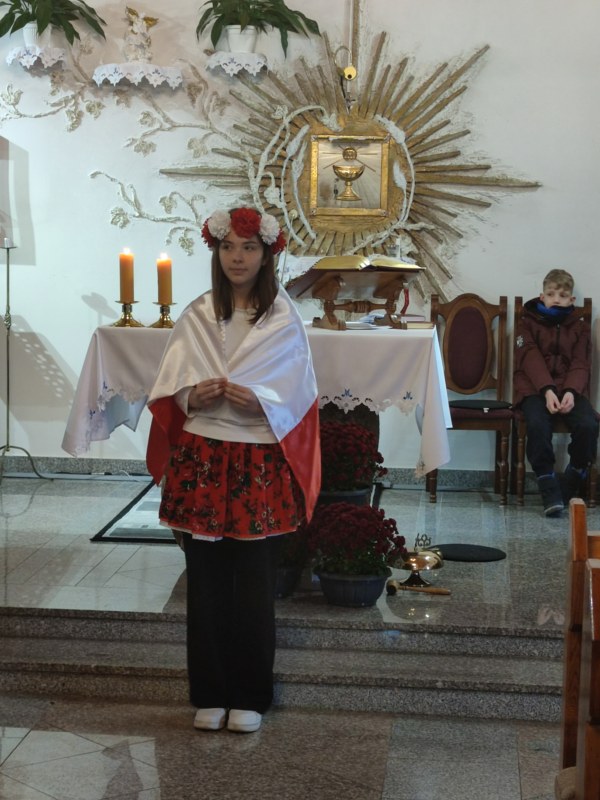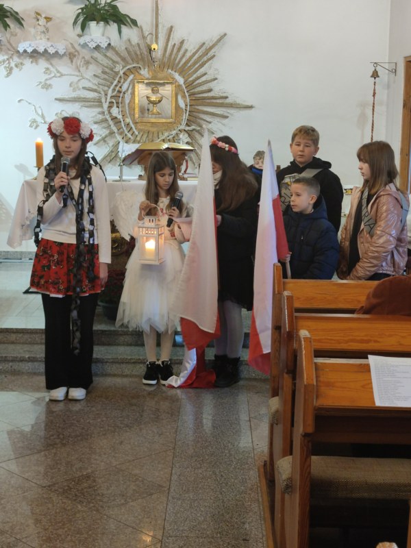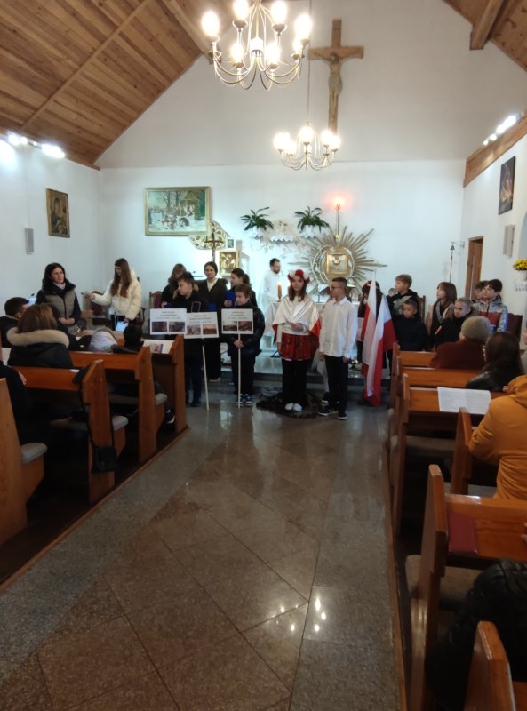 Lubimy trwać w atmosferze Święta Odzyskania Niepodległości. Chociaż od 11 listopada minęło już kilkanaście dni, to dziś 23 XI 2025 uczniowie naszej szkoły przedstawili w kościele parafialnym w Gałajnach program przygotowany z okazji tego święta.