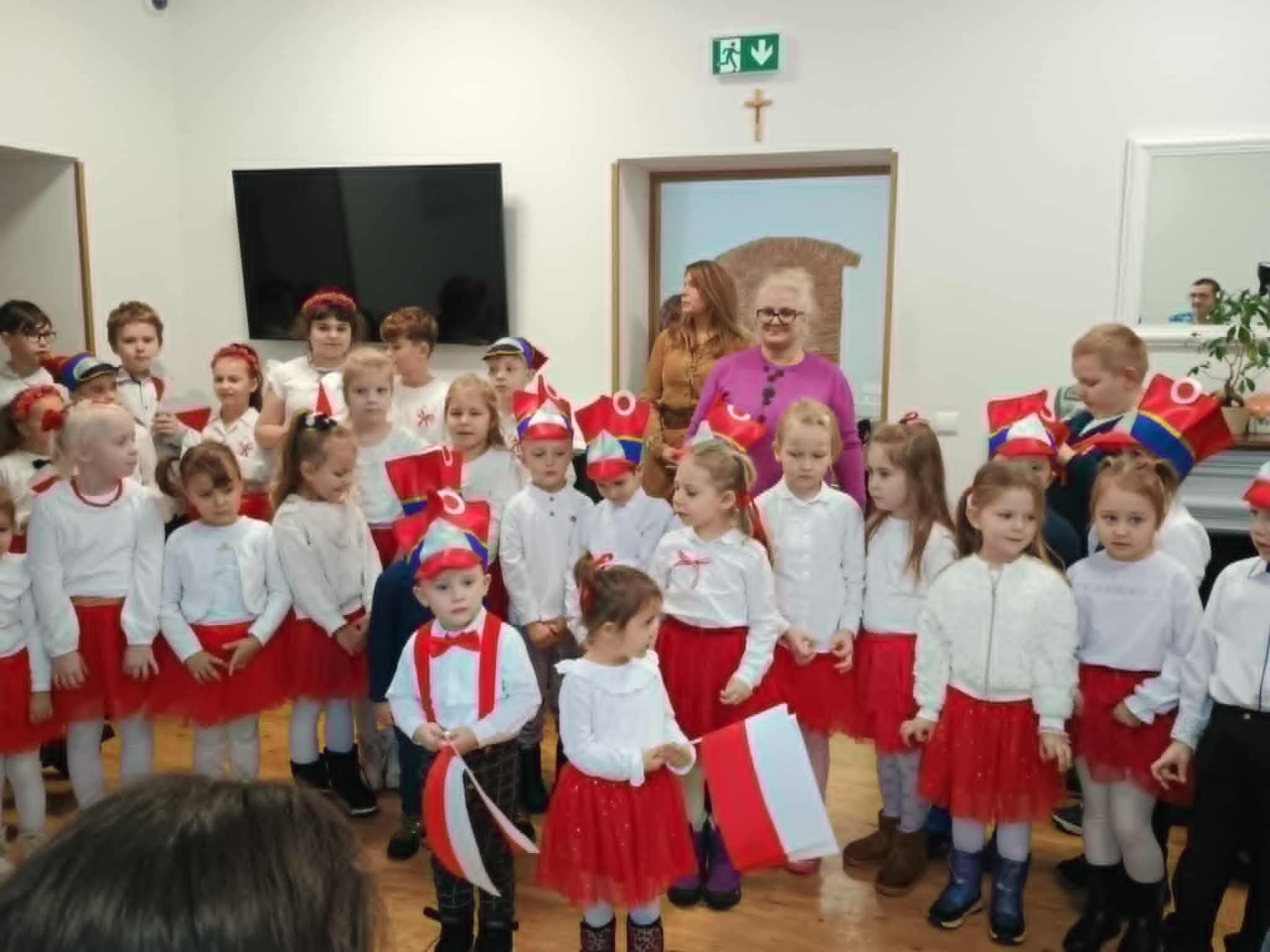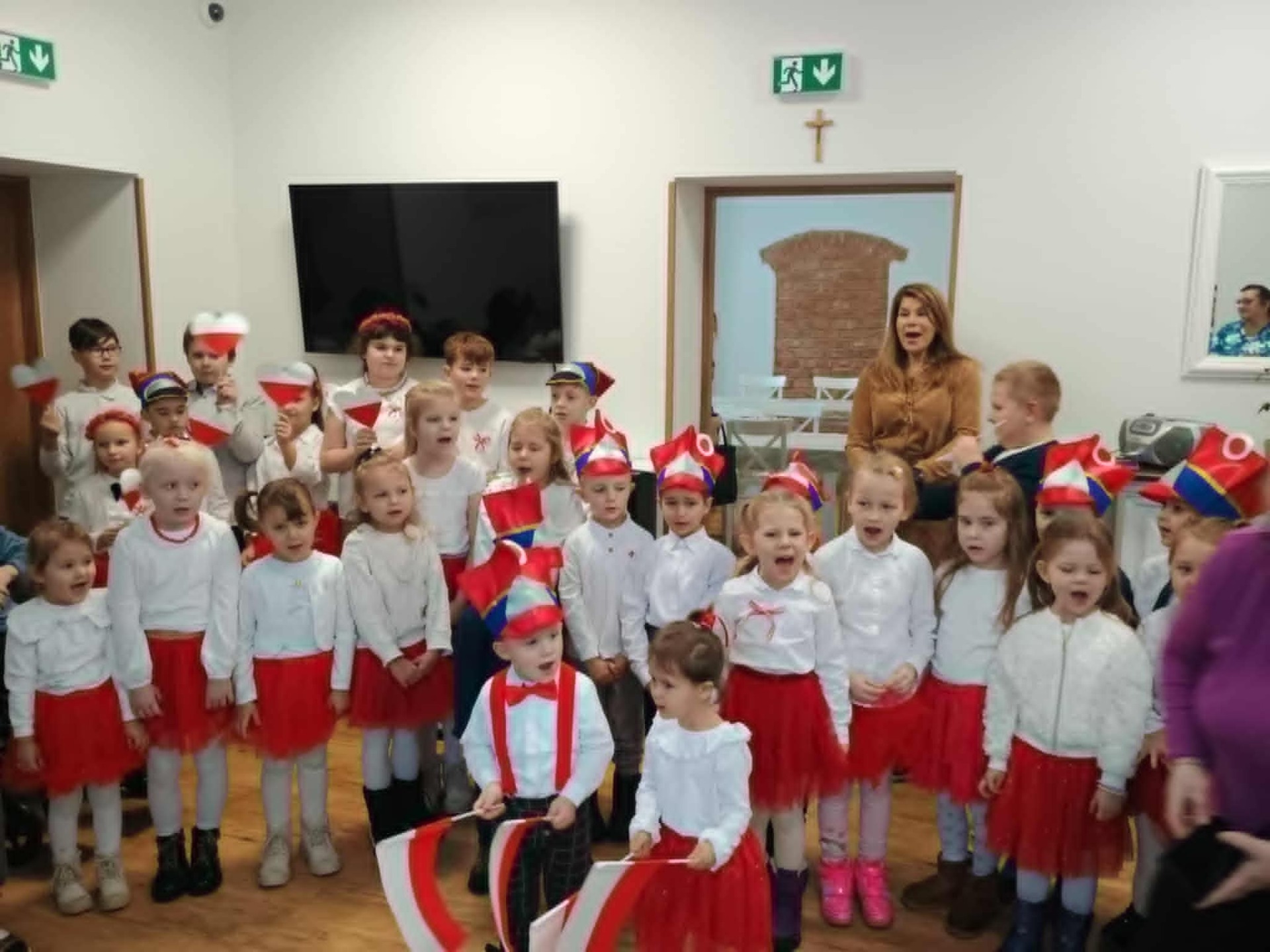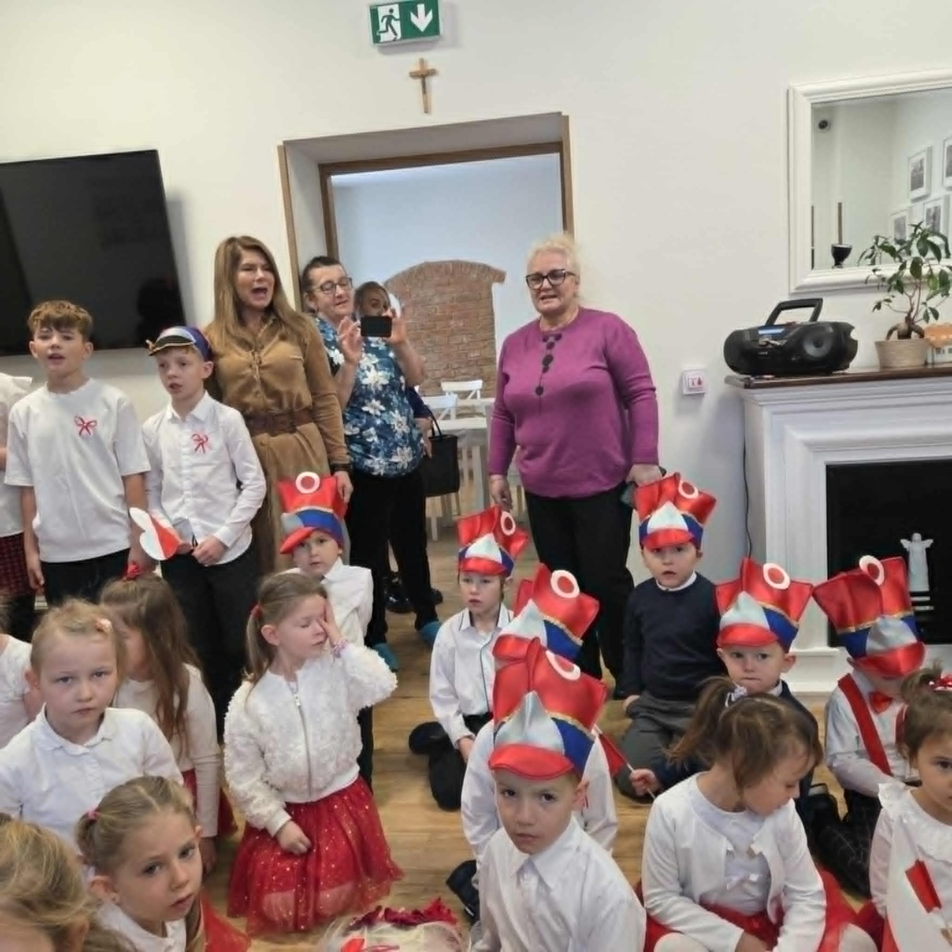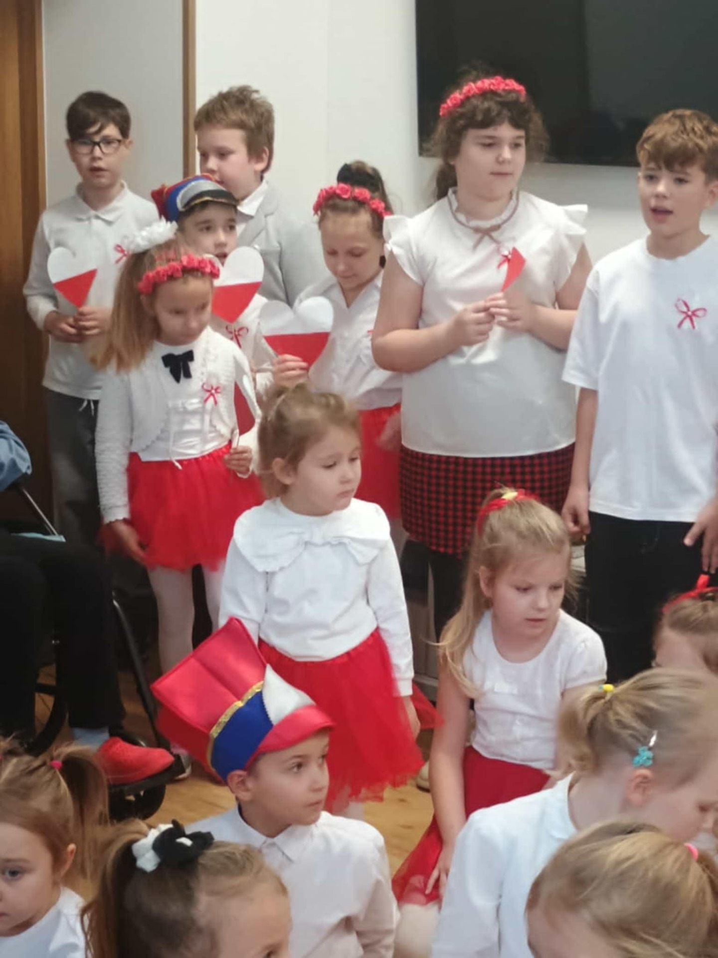 Wspólnie z pensjonariuszami zaśpiewaliśmy pieśni bliskie każdemu Polakowi: „Rotę”, „Piechotę” oraz „My, Pierwsza Brygada”. Dzieci zaprezentowały również układ taneczny z biało-czerwonymi flagami, a pięknie wypowiedziany „Katechizm polskiego dziecka” poruszył serca wszystkich obecnych. W sali zapanowało prawdziwe wzruszenie, ale też ciepło, bliskość i iskierka radości, której tak bardzo potrzeba w takich miejscach.