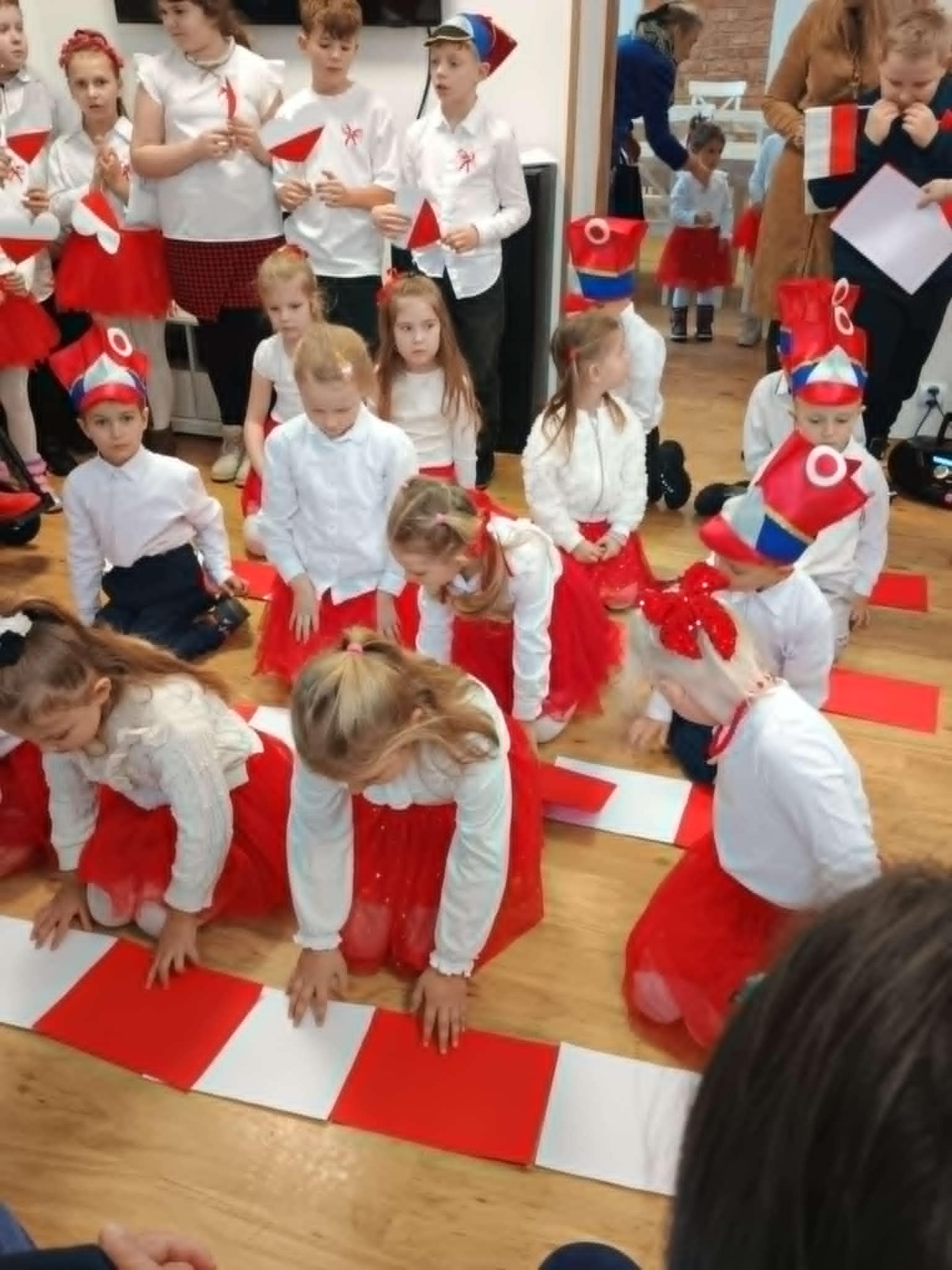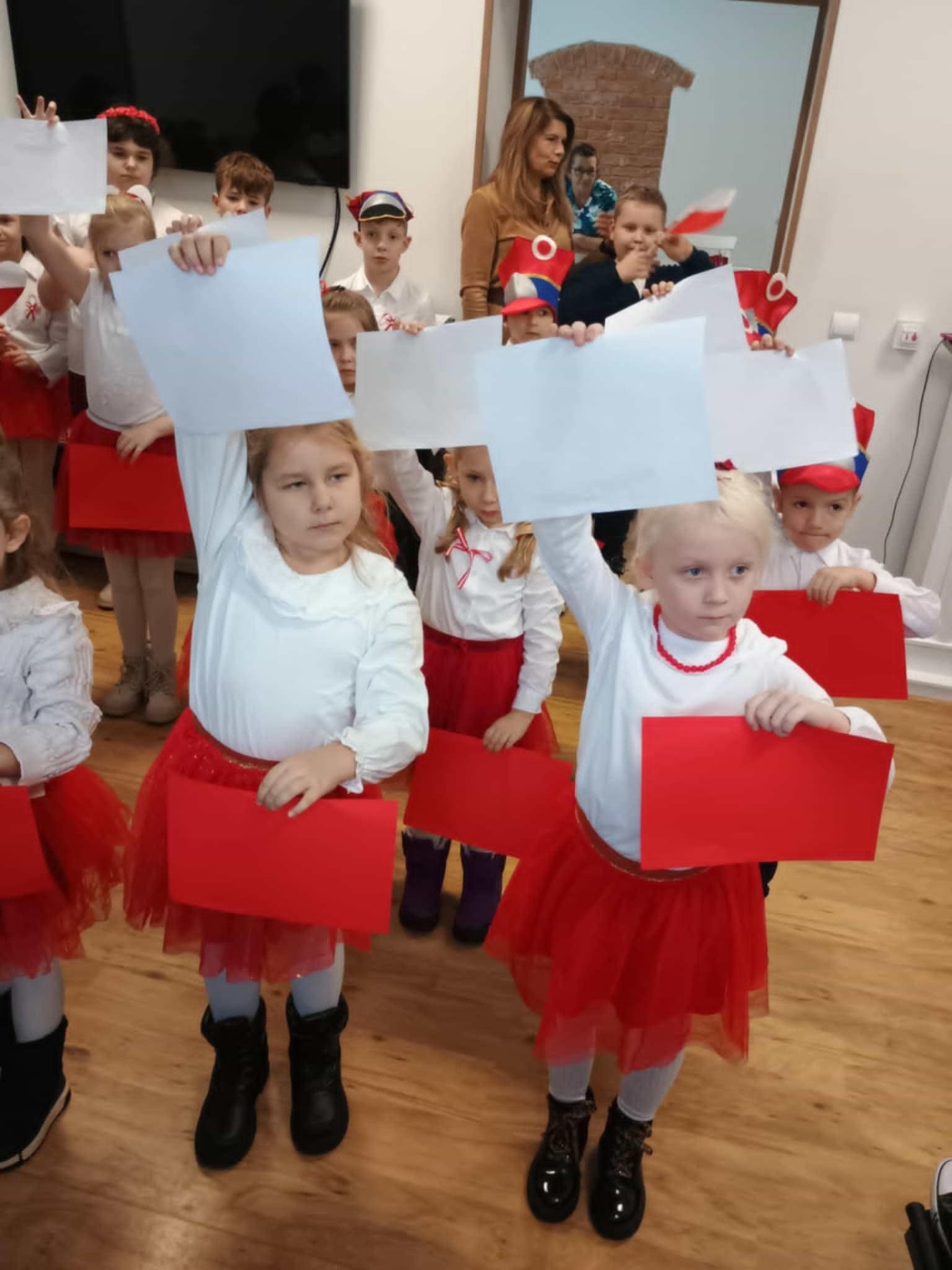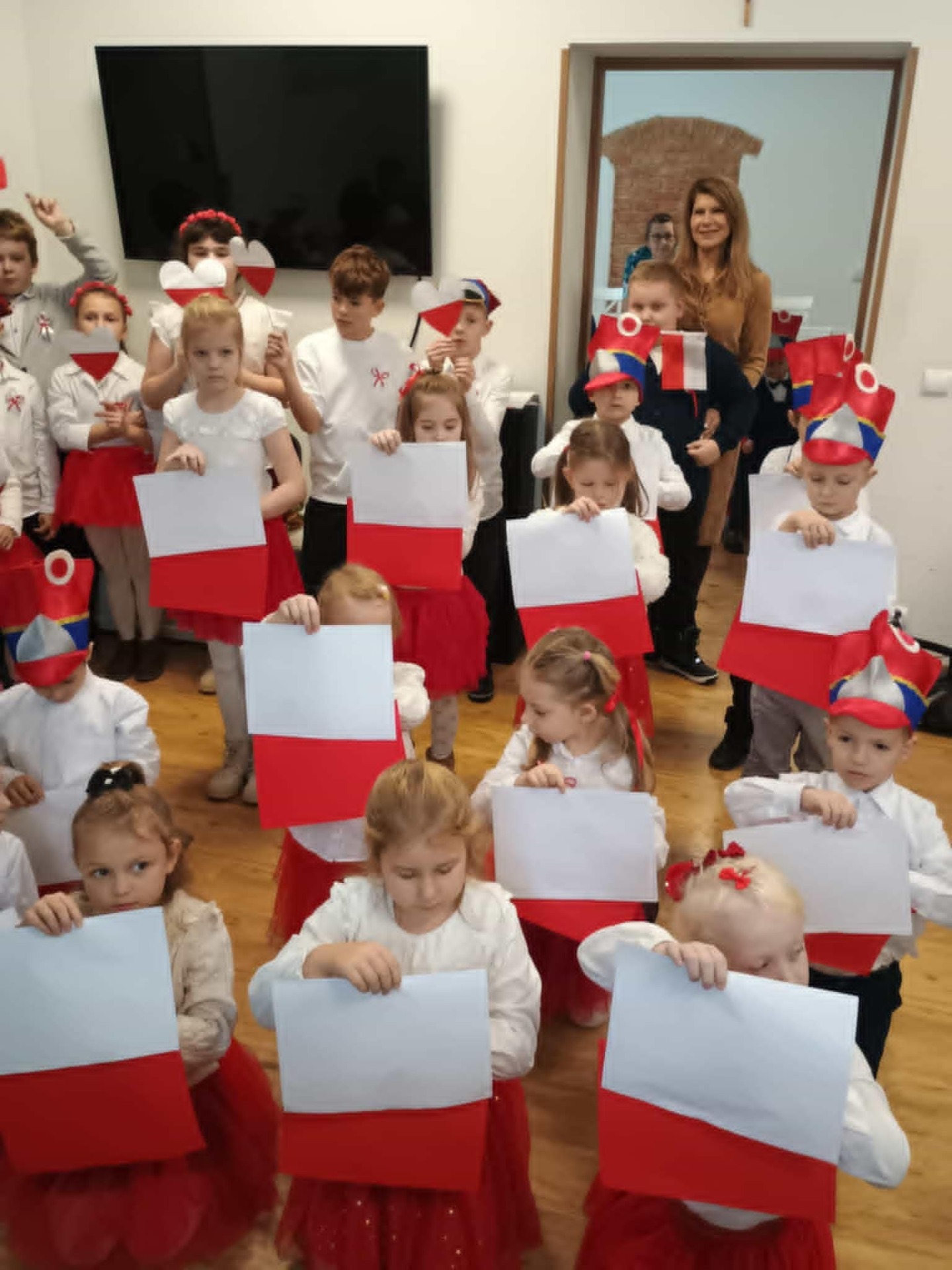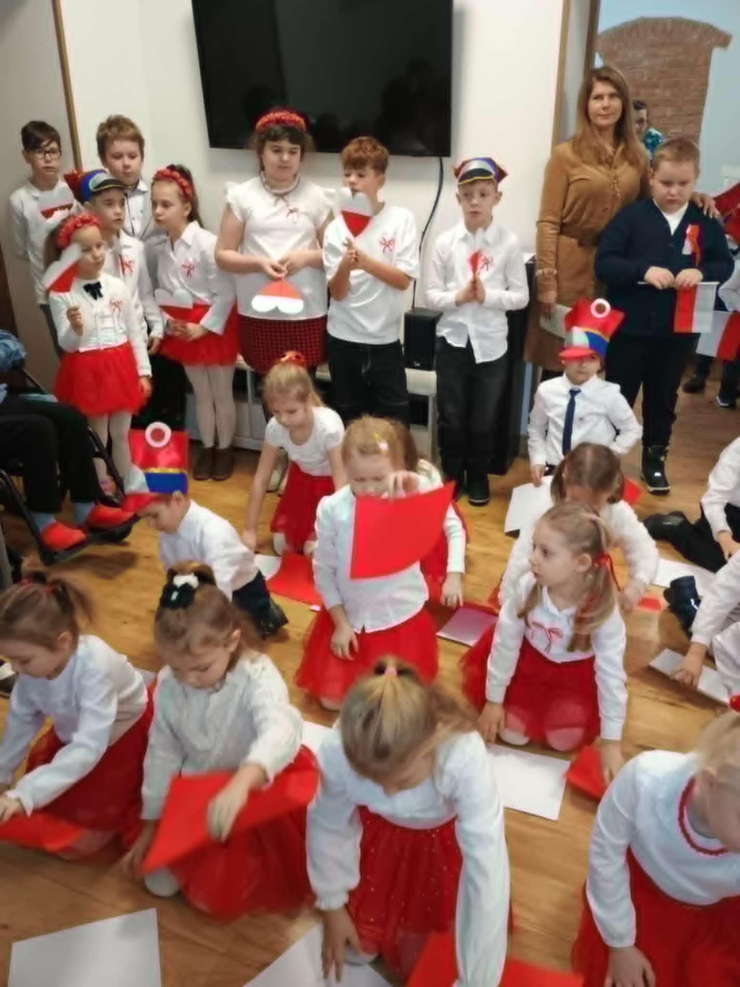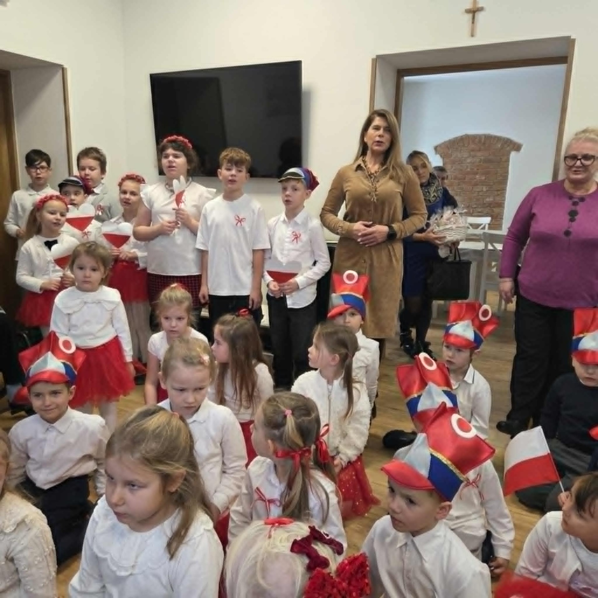 Z okazji Święta Niepodległości przedszkolaki oraz uczniowie klasy 3 wraz z wychowawczyniami p. Anną Lipowską i p. Marią Dudyk-Baran odwiedzili Dom Pomocy Społecznej w Worynach. To był wyjątkowy, serdeczny i pełen emocji dzień, w którym najmłodsi uczniowie naszej szkoły podzielili się radością, śpiewem i symbolem narodowej dumy.