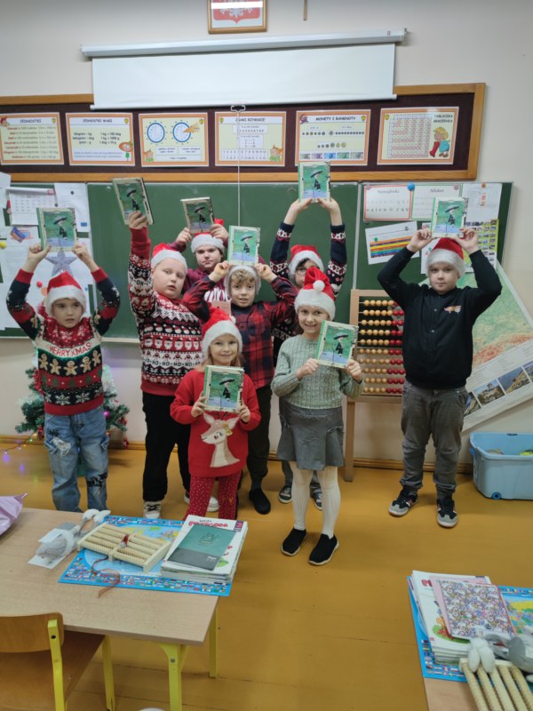 Wszystkim grzecznym dzieciom i nauczycielom wręczył słodkie prezenty, a dla III klasy nawet książki, czapki i rolki.