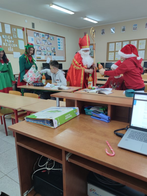 W piątek, na prośbę rodziców, odwiedził naszych uczniów św. Mikołaj wraz z elfami.